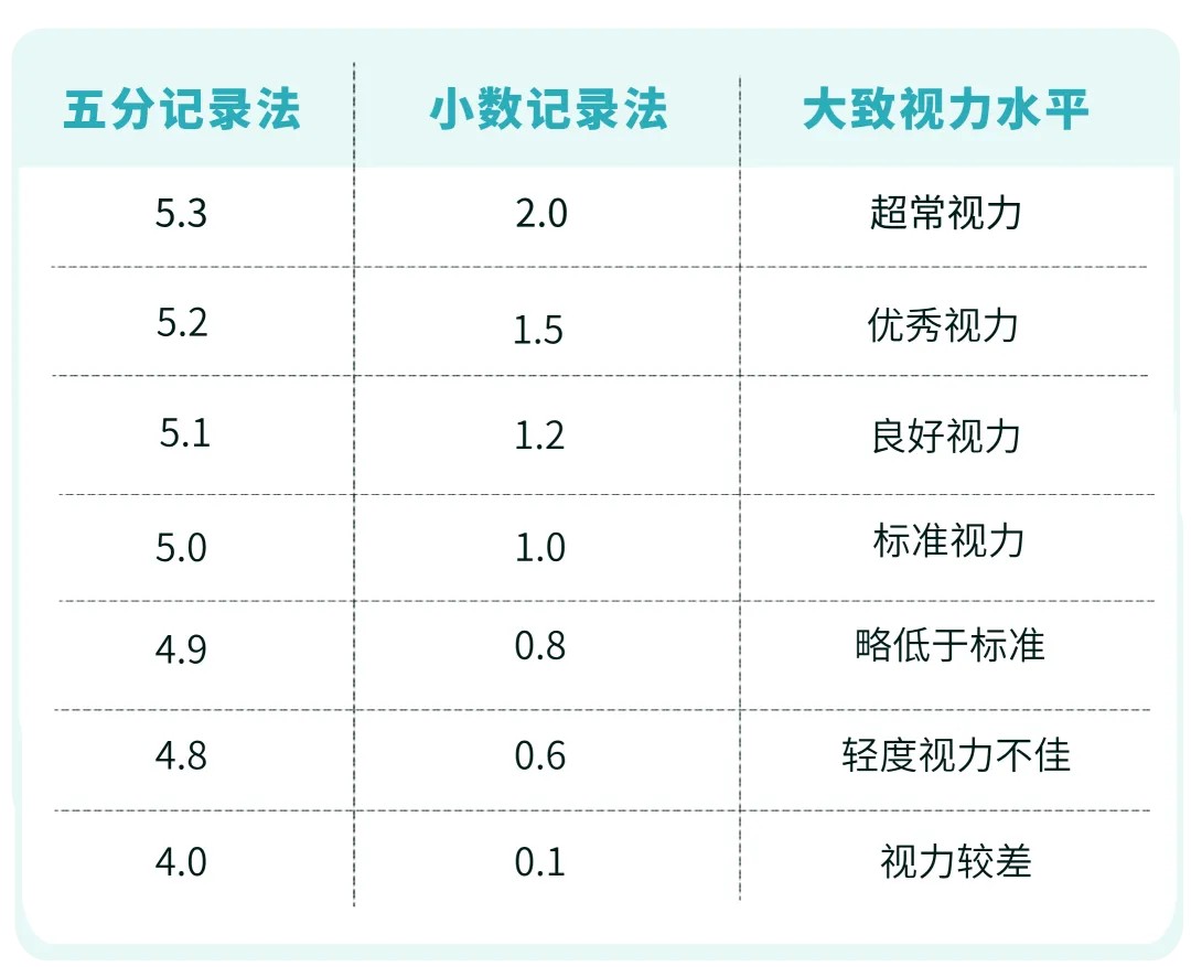 明明醫(yī)生說視力正常,可有的視力表標著 5.0,有的卻寫著 1.0,這兩個數(shù)字到底哪個代表的視力更好?
